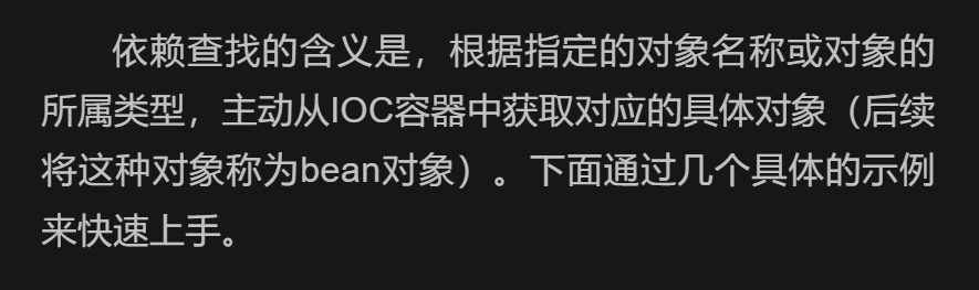 - 依赖注入是 “别人给啥用啥”,依赖查找是 “自己找想要的”