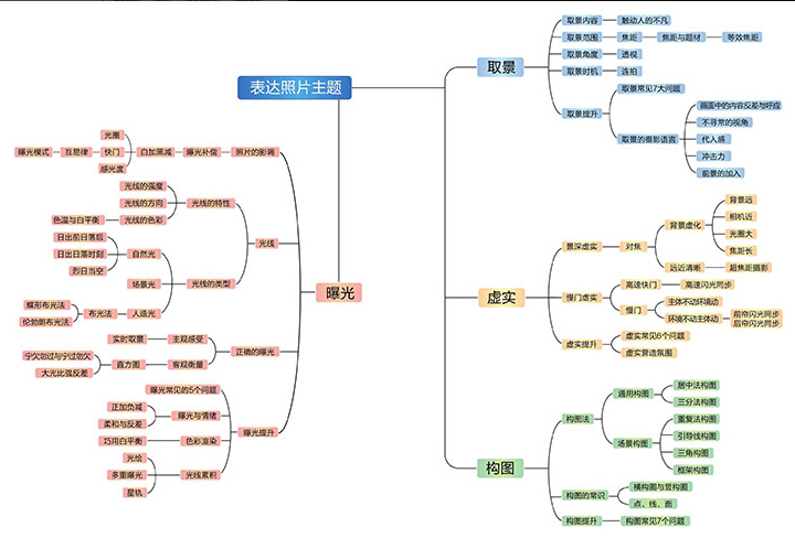 - 把摄影技巧分为了4个方面:取景、曝光、虚实及构图