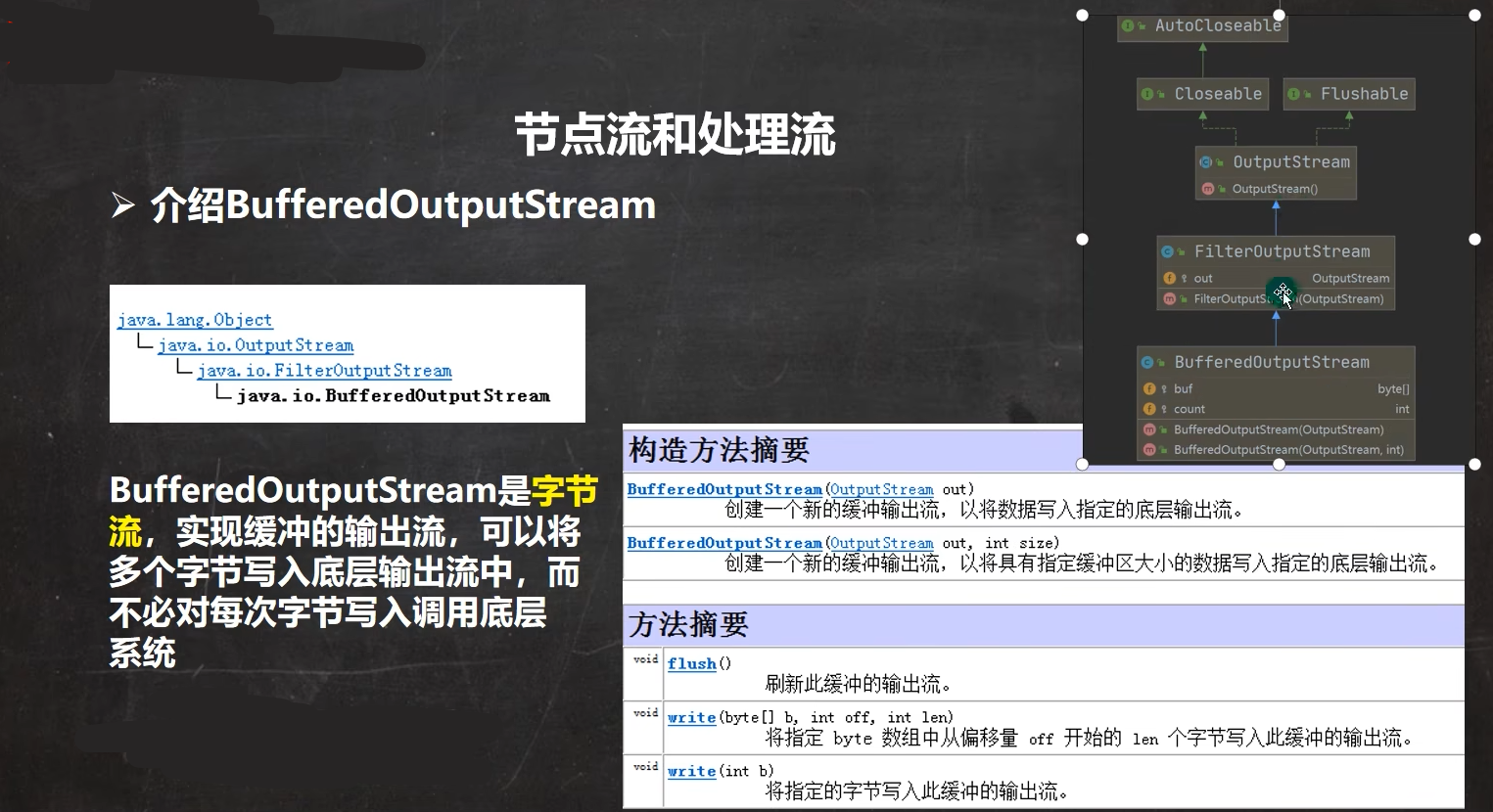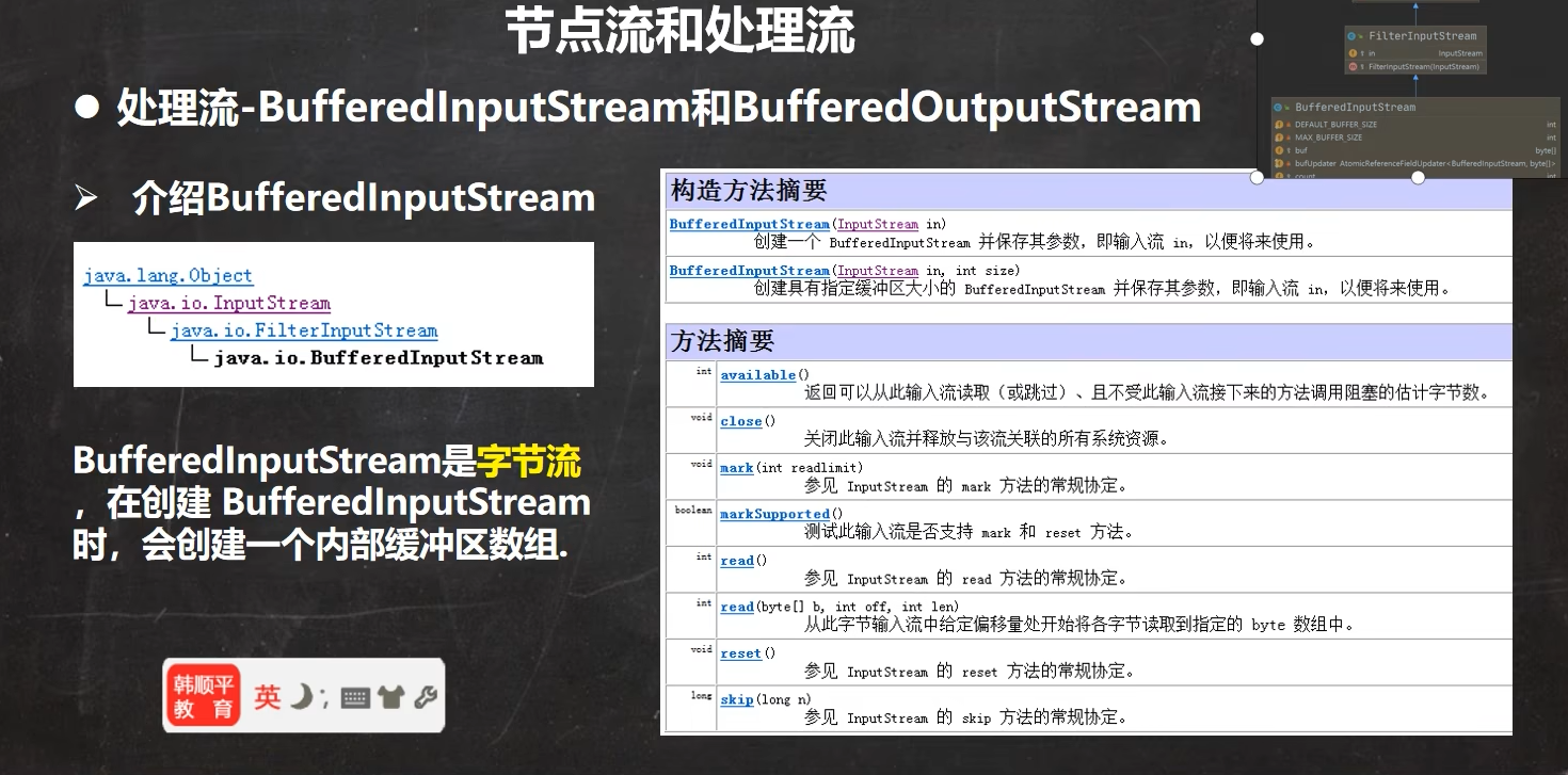 实际工作的是节点流处理流只是包装增强功能,关闭流的时候只用关闭bufferedReader,然后他会自动关闭底层的字节流(当前的BufferedReader是包装流)