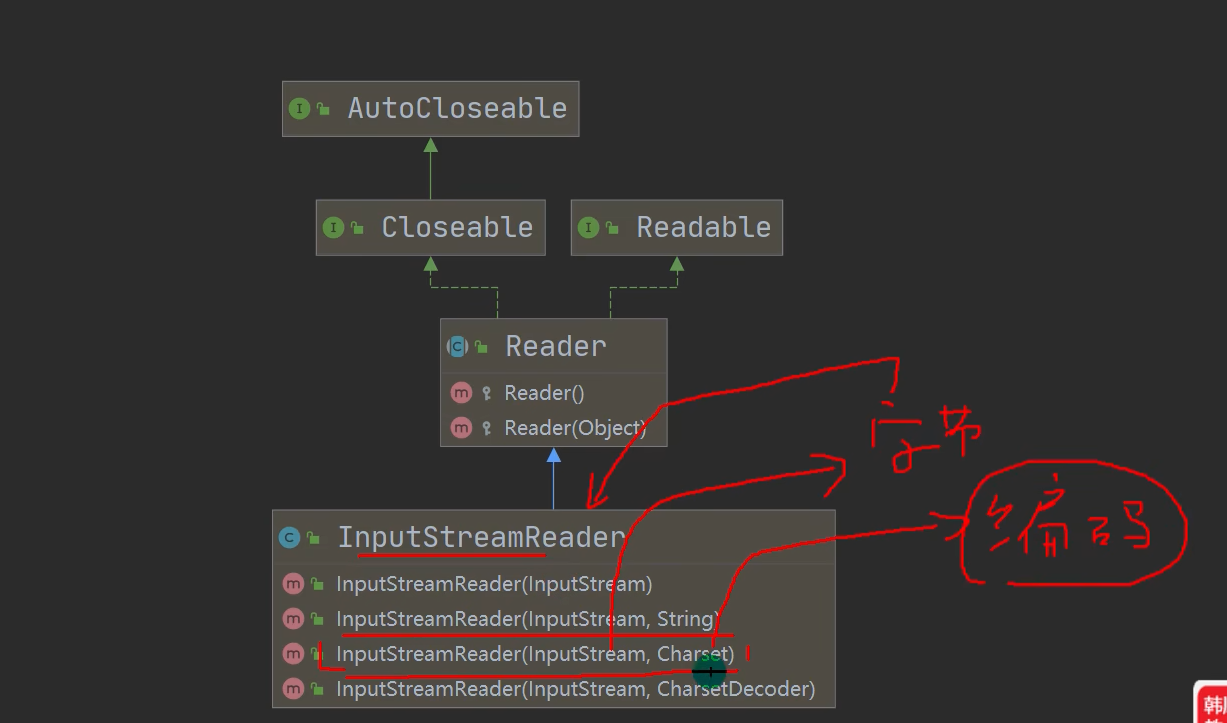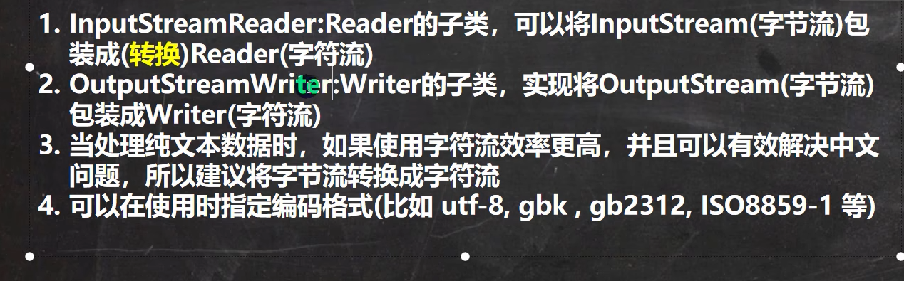 - 传入字节流,然后变成字符流,完成字节流到字符流的转换