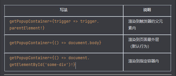 如果你遇到以下情况,建议使用 getPopupContainer: