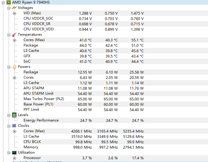 🔍 温度范围参考(Ryzen 9 7940HS)